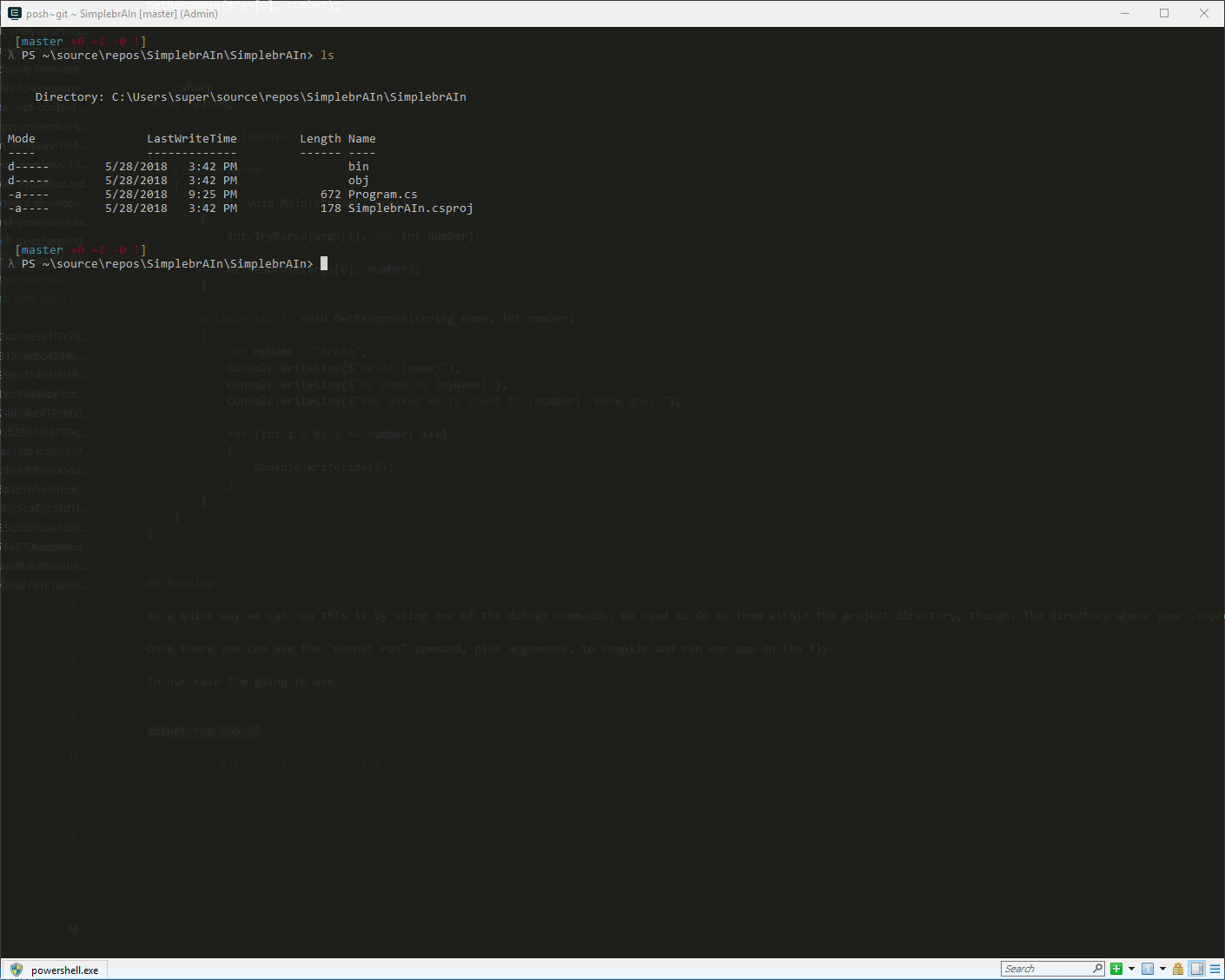 Once there you can use the “dotnet run” command, plus arguments, to compile and run our app on the fly.