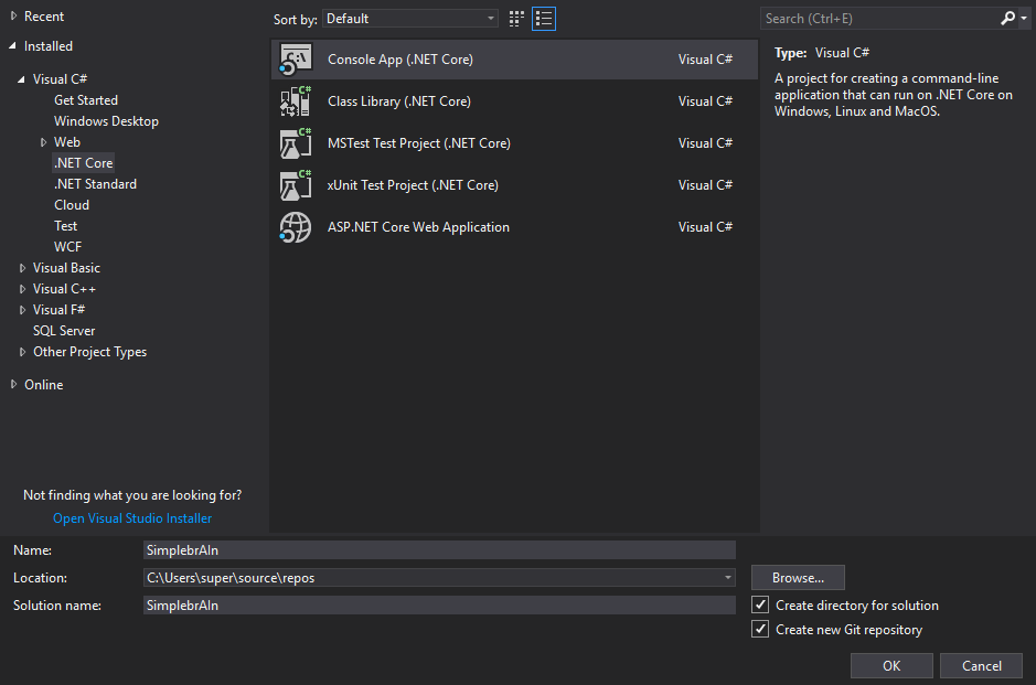 I’m going to be using Visual Studio (not Code) for this, but you’re welcome to use what you please. The C# plugin for Code gets better all the time, and the dotnet new commands can be used to scaffold new projects. Do what works best for you!